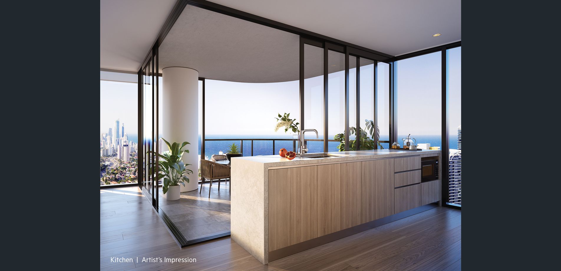 Individual balconies will further promote the flow of natural light ensuring all residences are bright and open. Stunning views spanning the coastline and hinterland can be appreciated from both the kitchen and living room, while ample indoor and outdoor